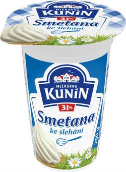 - smetana ke šlehání, 31 % tuku, tepelně ošetřeno UHT záhřevem