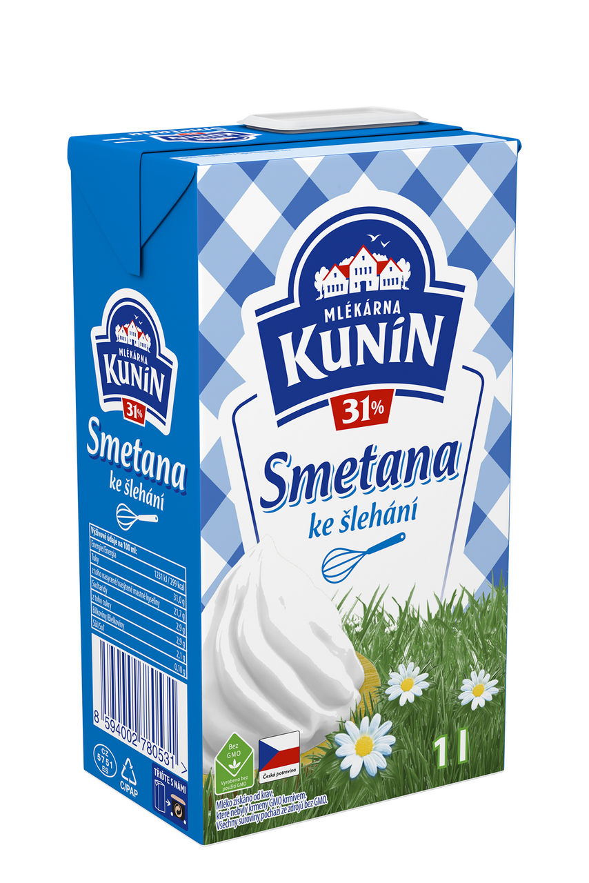 - trvanlivá smetana ke šlehání 31 % tuku, tepelně ošetřená UHT záhřevem