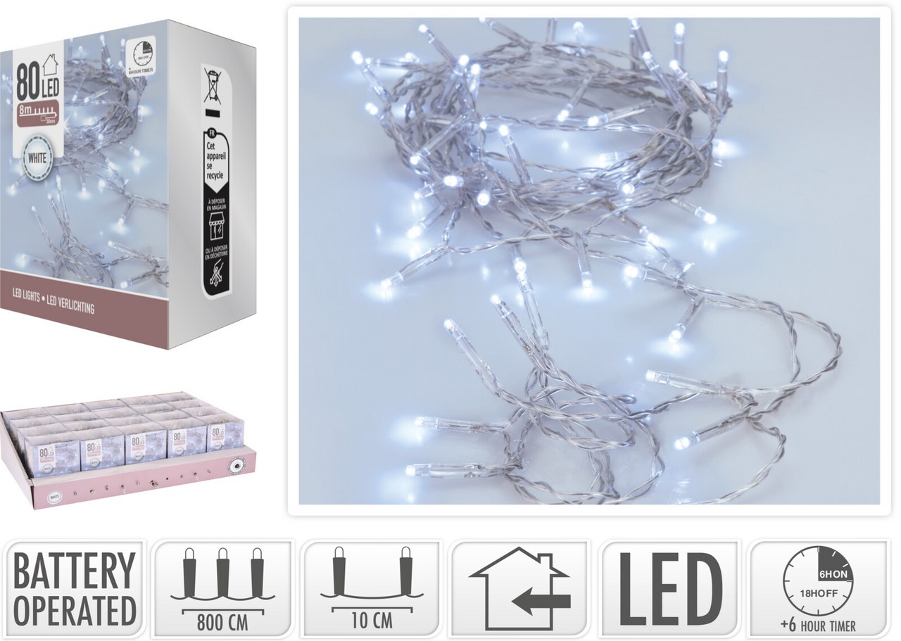 LED Řetěz transparentní 80LED bílá 1 ks