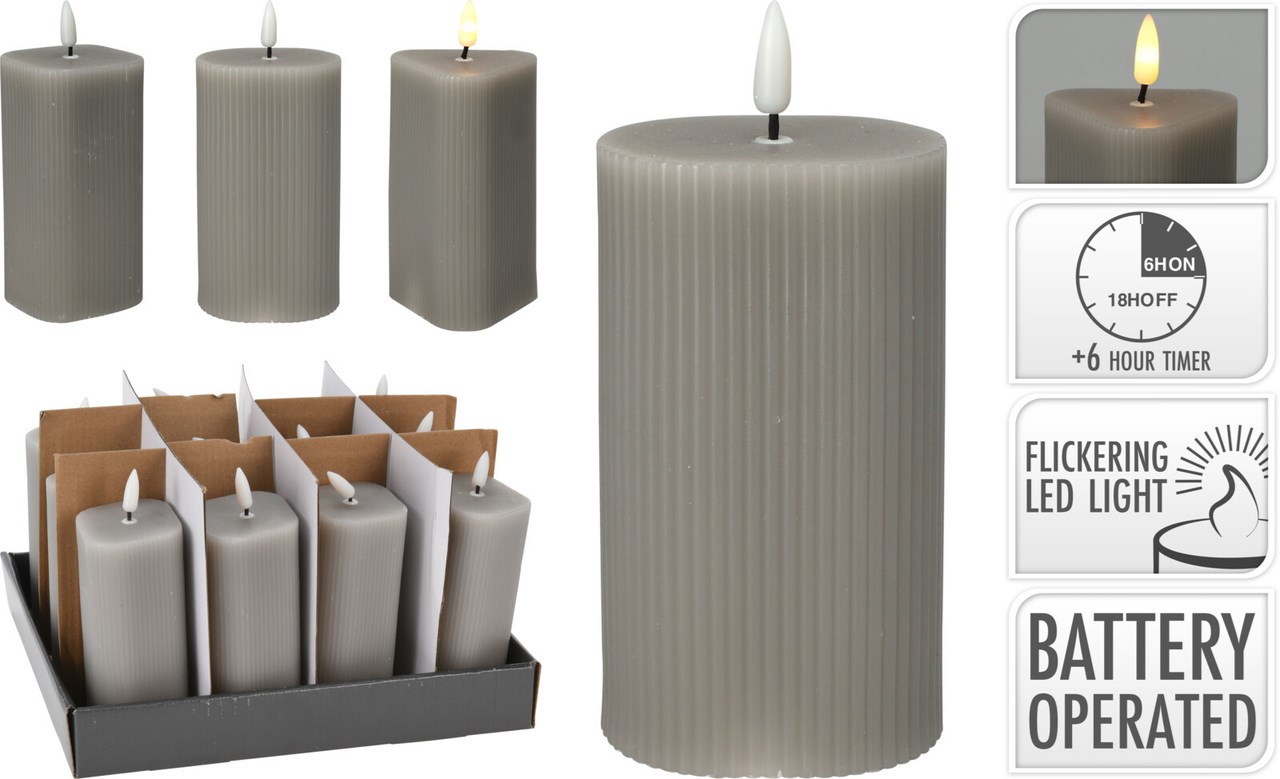 LED Svíčka vroubkovaná 13 cm šedá 3ASS 1 ks