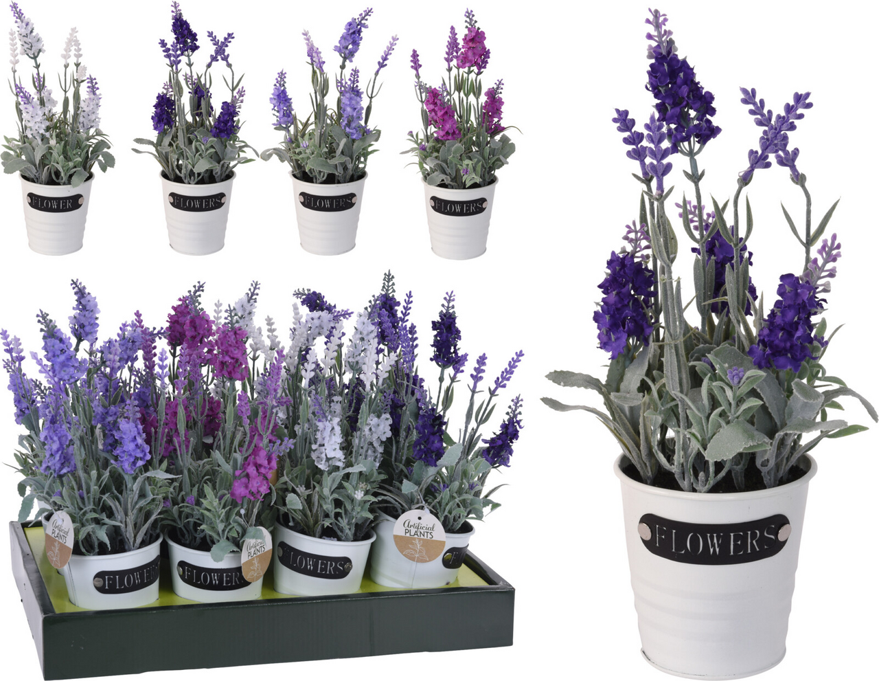 Levandule - dekorace v kovovém květináči 29cm 1 ks