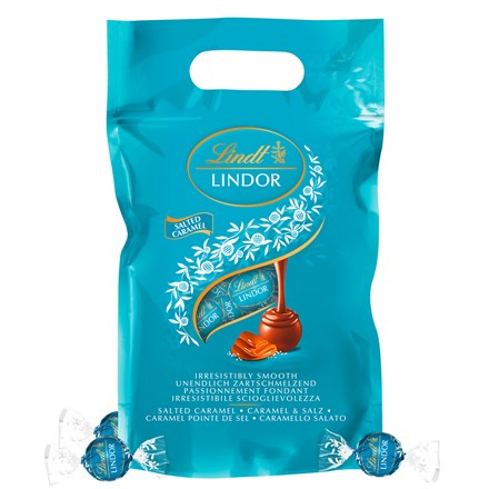 - Pralinky Lindor z mléčné čokolády Lindt s jemnou karamelovou náplní a krystalky soli.