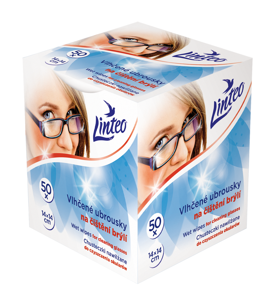 Linteo Vlhčené ubrousky na čištění brýlí 14 x 14 cm 50 ks