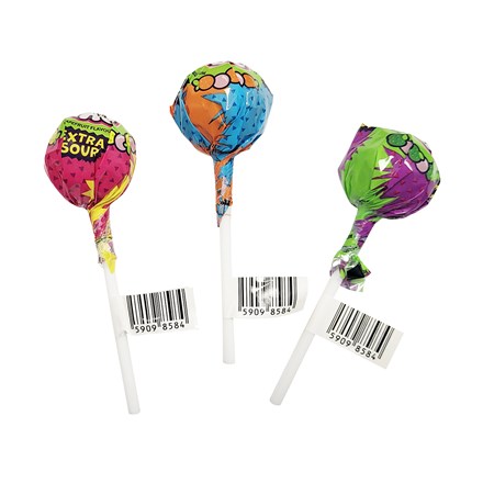 - Lízátko s ovocnou extra kyselou příchutí se žvýkačkou