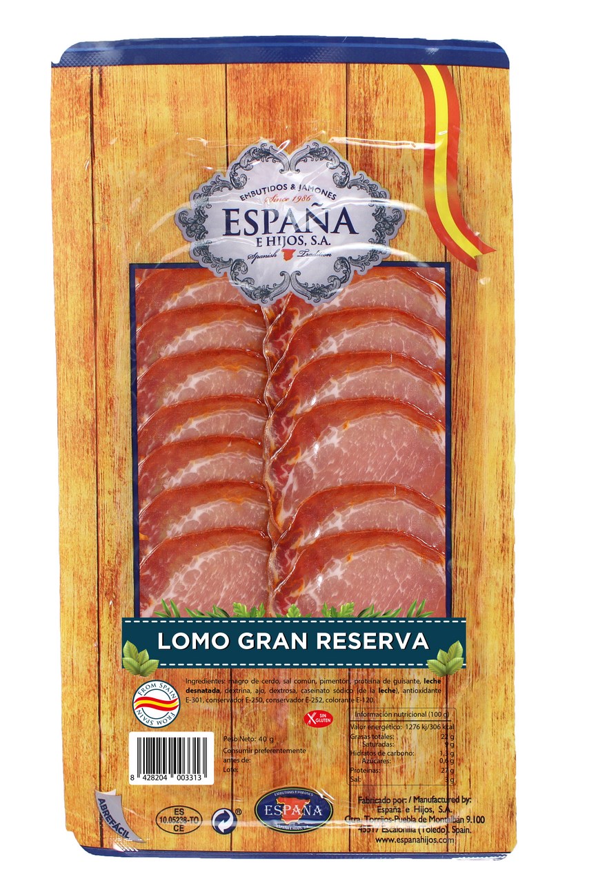 - pork loin, salt, sugar, paprika, spices, antioxidant E-301, preservatives E-252 and E-250, acidity corrector E-331iii.