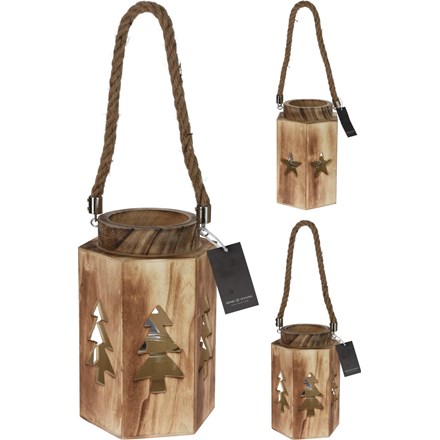 Lucerna 23 cm dřevo sklo 2ASS 1 ks