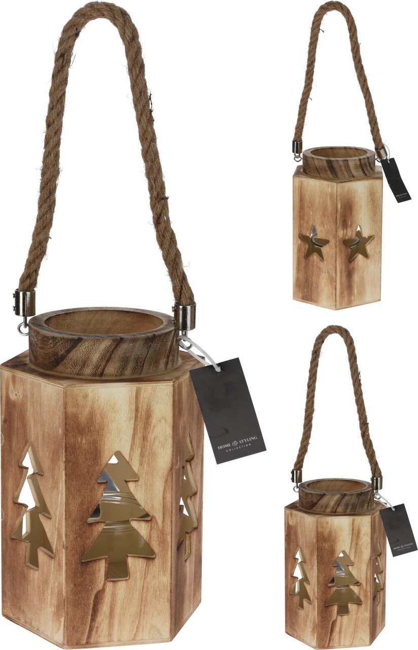 Lucerna 23 cm dřevo sklo 2ASS 1 ks