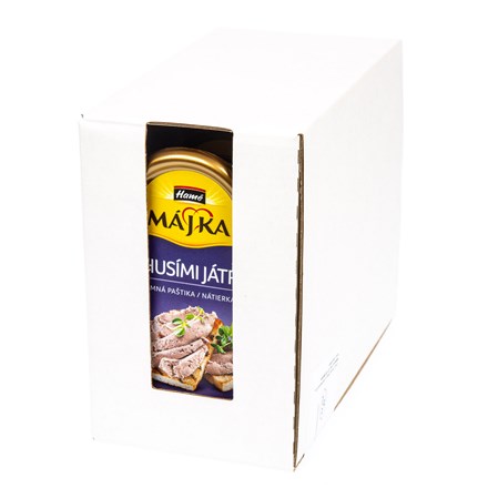 - Složení: Vepřové sádlo, vepřová játra, vývar z masa, husí játra (10 % hm.), voda, vepřové kůže, vepřové maso, solící směs (sůl, konzervant E 250), stabilizátor (karubin, karagenan, chlorid draselný), regulátor kyselosti octan sodný, cukr, kořenící přípravky (koření a extrakty koření, aromata, dextróza, zvýrazňovače chuti E621, E635, sůl), aroma.