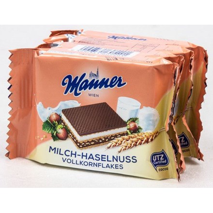 - Oplatky Manner se skládají z pěti vrstev jemných vaflí plněných čtyřmi vrstvami nejjemnější krémové oříškové