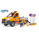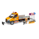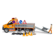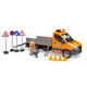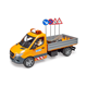 - Vozidlo má sklopnou nakládací plošinu a boční stěny lze otevřít. Součástí dodávky jsou nájezdové rampy pro přepravu malých vozidel. Aby zábava mohla začít hned, je součástí dodávky stavební dělník spolu s kolečkem, nářadím, značkami a pylony. Sprinter je vybaven světelným a zvukovým modulem. Kromě tří různých zvuků sirény můžete pustit i zvuk motoru vozidla. Příštímu staveništi v dětském pokoji tedy nic nestojí v cestě. Měřítko: 1:16 Rozměr balení: 20,5 x 19,5 x 50,5 Věk: 4+