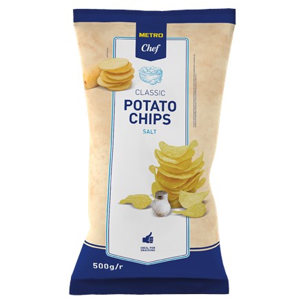 Křupavé, rovnoměrně osmažené a jen jemně solené – METRO Chef chipsy zaujmou jednoduchým a kvalitním složením: brambory, slunečnicový olej a špetka soli. Žádný palmový olej, jen poctivá chuť v každém balení