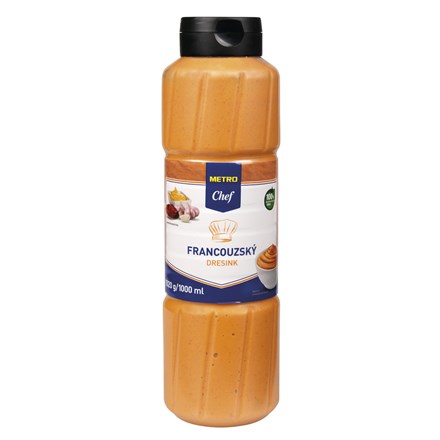 - Pitná voda, řepkový olej, cukr, rajčatový protlak 8,8 % (pitná voda, rajčatový protlak, jedlá sůl), HOŘČICE 4,4 % (pitná voda, HOŘČIČNÉ semeno, ocet kvasný lihový, jedlá sůl, extrakt koření), kořenIcí přípravek 3,7 % (koření, česnek 18 %, paprika, maltodextrin, jedlá sůl, extrakt koření, aroma), VAJEČNÝ žloutek, kvasný ocet vinný (pitná voda, ocet kvasný vinný, konzervant: DISIŘIČITAN draselný), jedlá sůl, zahušťovací přípravek (modifikovaný kukuřičný škrob, stabilizátor: xanthan, řepkový olej), sušené MLÉKO, barvivo: karoteny, regulátor kyselosti: kyselina citronová, ocet kvasný lihový, konzervant: sorban draselný.