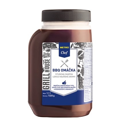- pitná voda, cukr, sacharózový sirup, rajčatový protlak, ocet, worcestrová omáčka (pitná voda, cukr, ocet, jedlá sůl, víno, švestková povidla (švestky, jablka, cukr), kyselina citronová, směs koření, aromata, barvivo E150d), aroma, jedlá sůl, modifikovaný škrob, česnek sušený mletý, aroma tekuté kouřové, barvivo: E150d, zahušťovadlo xanthan, směs koření, konzervanty (sorban draselný a benzoan sodný).