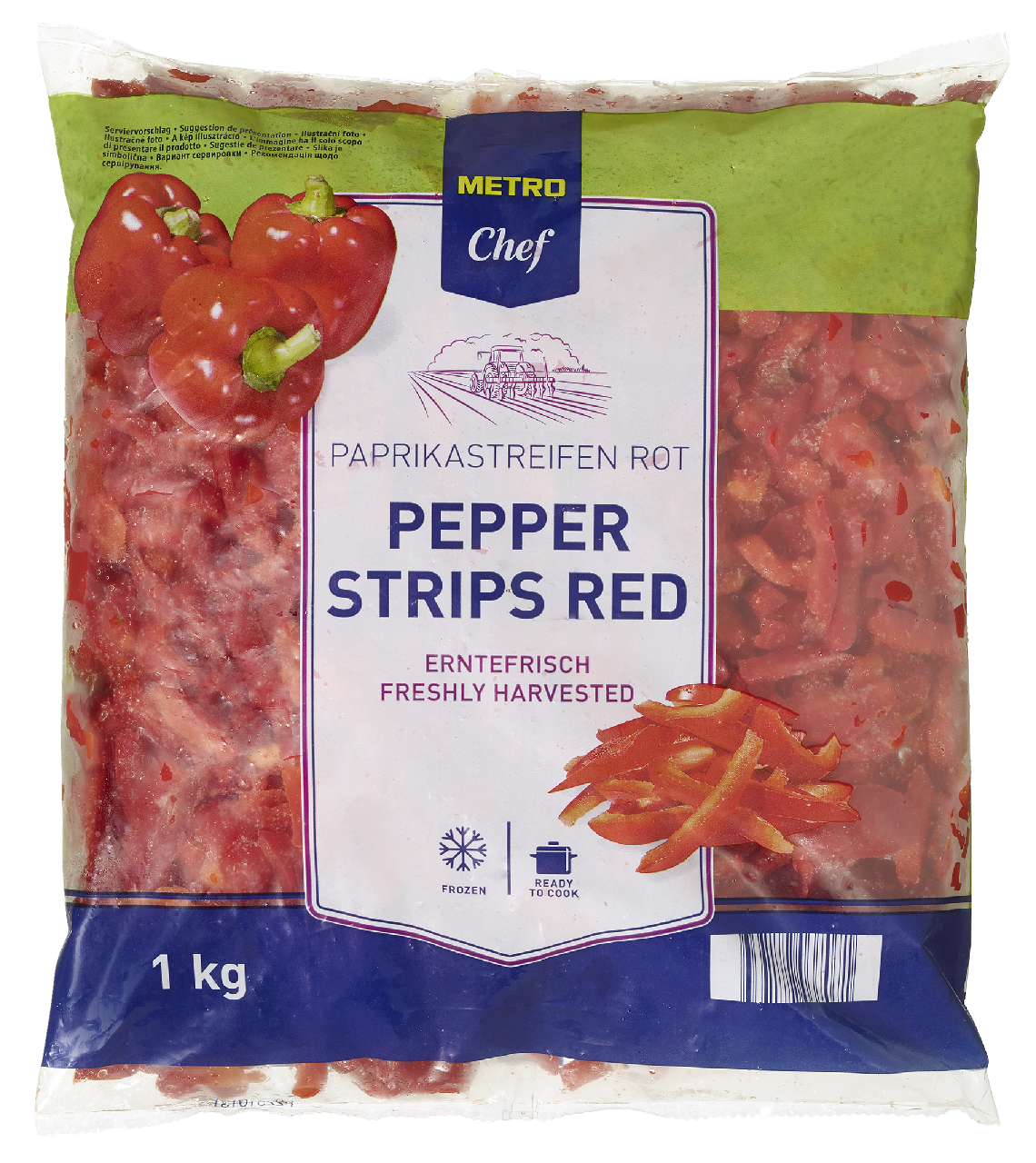 - Metro Chef pepper strips red. The peppers are washed, cut in strips and individually quick-frozen shortly after harvesting. Quick-freezing guarantees an optimal conservation of taste, appearance and nutrients. The peppers are ready-to-cook and do not contain any additives.