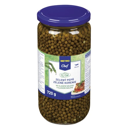 - Zelený pepř ve slaném nálevu. Pasterováno. Pálivý výrobek.