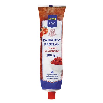 METRO Chef rajčatový protlak v tubě rozšiřuje naši nabídku kvalitních rajčatových výrobků. Na výrobu 100 g protlaku bylo použito 700 g zralých rajčat, což zaručuje bohatou chuť a vysokou kvalitu.