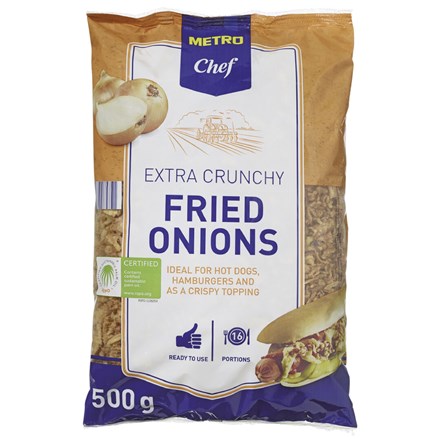 - Cibule*, palmový olej, pšeničná mouka, sůl. *Na výrobu 100 g smažené cibule se používá 220 g cibule.