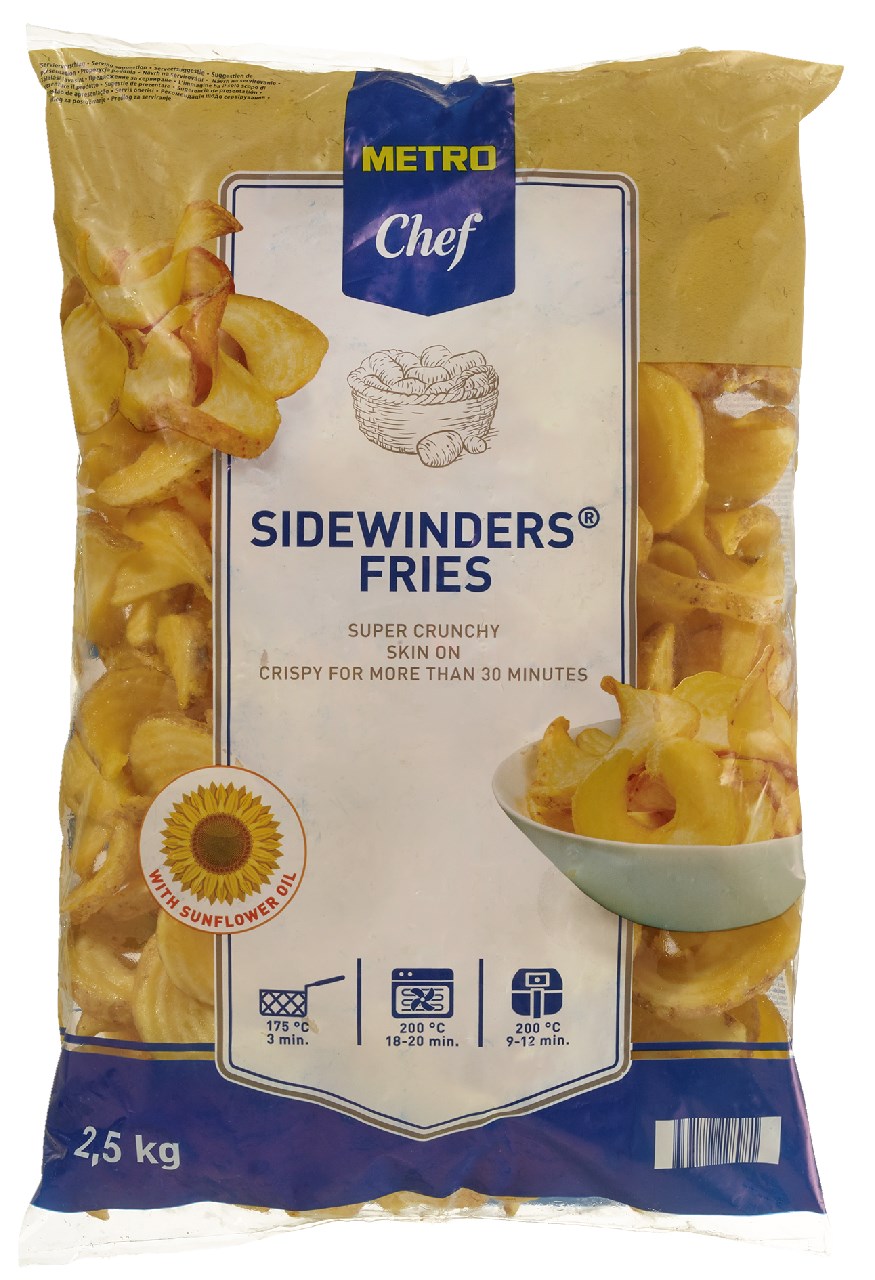 - SIDEWINDERS® Bramborové hranolky předsmažené, obalované, hluboce zmrazené. Sidewinders® je registrovaná ochranná známka společnosti J.R. Simplot Company a používá se nazákladě licence na vlastnictví a patentované french-fry produkty.