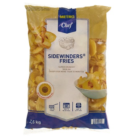 - SIDEWINDERS® Bramborové hranolky předsmažené, obalované, hluboce zmrazené. Sidewinders® je registrovaná ochranná známka společnosti J.R. Simplot Company a používá se nazákladě licence na vlastnictví a patentované french-fry produkty.
