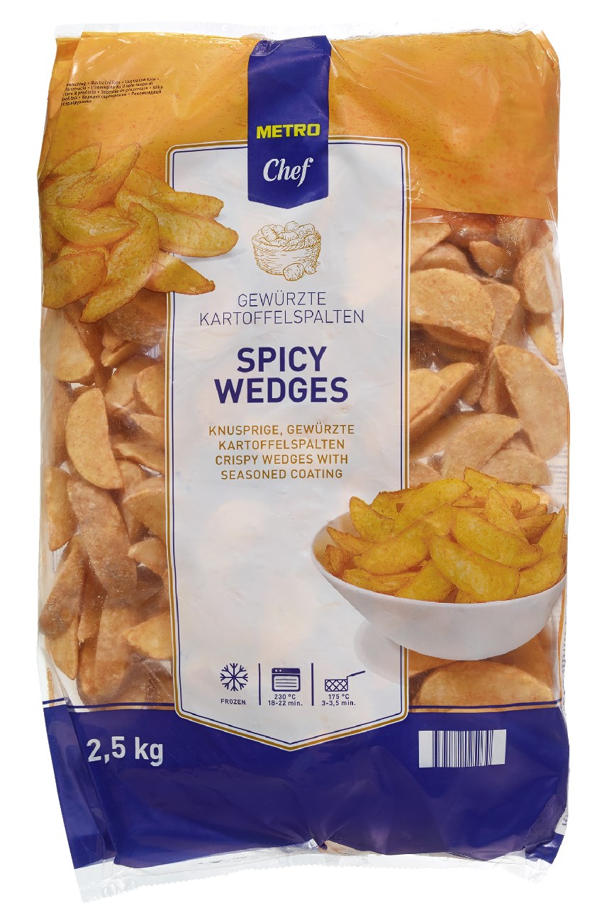 - Spicy wedges - brambory kořeněné, předsmažené, hluboce zmrazené.