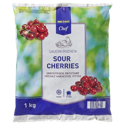- Višně, vyloupané, připravené na vaření, hluboce zmrazené.