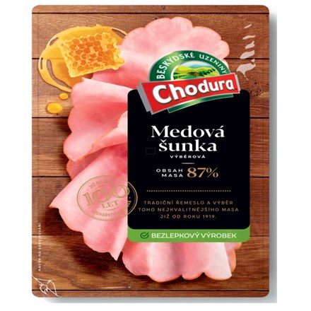 - Vepřová kýta (87 %),pitná voda, med (1,5 %), jedlá sůl, stabilizátory (guma euchema, trifosforečnany), cukr, extrakty koření, antioxidant (erythorban sodný), konzervant (dusitan sodný).