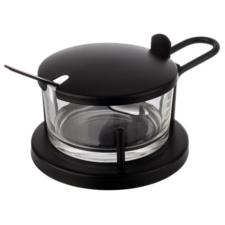 - Cheese dish "CLASSIC" O 11 cm, h: 7 cm glass, stainless stee, black with spoon 0,18 ltr.