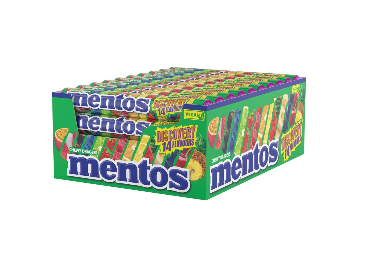 - Dražé se žvýkací náplní (30%) s ovocnou příchutí.
