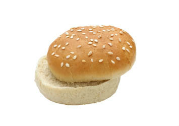 - Soft wheat bun for preparation of Hamburger, sprinkled with sesame, cut,