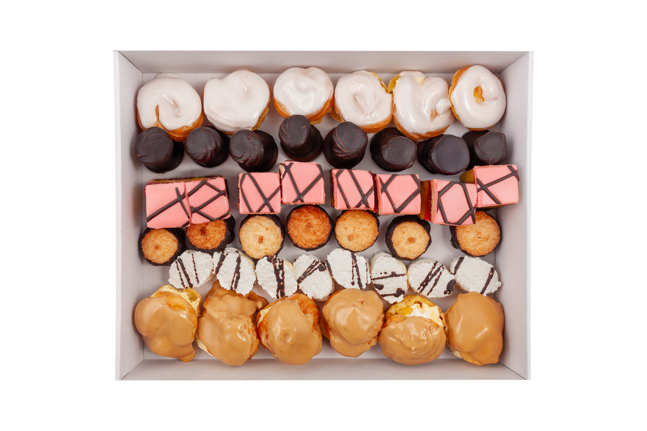 - Rostlinný tuk (palmový tuk, kokosový tuk, pitná voda, řepkový olej, emulgátory:E322,E471, sušené MLÉKO odtučněné, aroma, konzervant:E202, regulátor kyselosti:E330, vitamin A, barvivo:E160a), fondán (cukr, glukózový sirup, pitná voda), poleva tuková tmavá (cukr, plně ztužený rostlinný tuk palmojádrový kakaový prášek se sníženým obsahem tuku, emulgátor SÓJOVÝ lecitin, vanilkový extrakt), směs na korpus (PŠENIČNÁ mouka, cukr, emulgátory:E472b,E477, glukózový sirup sušený, MLÉKO odtučněné sušené, kypřící látka:E450i, kypřící látka:E500ii, sůl jedlá jodidovaná {sůl jedlá, jodičnan draselný}, zahušťovadlo:E415, barvivo:E160a(i), aroma), vanilkový krém (cukr, zahušťovadla: modifikovaný škrob, alginát sodný,E339,E450,E516, sušené MLÉKO, sušená SYROVÁTKA, sušený palmový olej [palmový olej, glukózový sirup, MLÉČNÁ bílkovina, stabilizátor:E451i], aroma a přírodní vanilkové aroma, barviva: B-karoten, riboflavin), krém do špiček směs (cukr, kakao se sníženým obsahem tuku, palmový olej v prášku {palmový olej, glukózový sirup, MLÉČNÁ bílkovina}, SÓJOVÁ mouka, modifikovaný škrob), VAJEČNÁ melanž, ovocná pomazánka (směs ovocných dření jablka švestky, červený rybíz, fruktózo-glukózový sirup, regulátor kyselosti: kyselina citrónová, želírující látka: pektin, koncentrát z černé mrkve), směs na kokosky (směs {cukr, kokos strouhaný (39 %), sušený VAJEČNÝ bílek, rýžová mouka, rostlinný tuk plně ztužený kokosový, sušené MLÉKO, emulgátor:E472a, zahušťovadlo:E401, glukózový sirup}, olej řepkový, džem {cukr, jablka (35%), meruňky (7%), kukuřičný škrob, regulátor kyselosti: kyselina citronová, látka želírující: pektin, aroma, barviva: beta karoten a paprikový extrakt}), korpus laskonka (cukr, kokos, VAJEČNÝ bílek, cukr moučka {cukr, bramborový škrob}, sušený VAJEČNÝ bílek, regulátor kyselosti: kyselina citrónová), 100 % palmový tuk, aroma rumové (voda, E422, E1520, aromatické látky, aromatické přípravky, kouřové aroma, konzervační látka: E202), směs pálená (kukuřičný škrob, PŠENIČNÁ mouka, sušená VEJCE, kukuřičná mouka, PŠENIČNÝ škrob, sušená SYROVÁTKA, sušené odstředěné MLÉKO, emulgátor: SYROVÁTKA, E471, E477, E475, E472b, modifikovaný škrob kukuřičný, kypřící prášek E450, E500, jedlá sůl jodidovaná {jedlá sůl, jodičnan draselný}, zahušťovadlo E412, barvivo E160a), rostlinný krém (voda, palmojádrový olej 25 %, cukr, MLÉČNÁbílkovina,emulgátory:E472b,E472e, SÓJOVÝ lecitin, stabilizátory:E460,E466, aroma, barvivo:E160a), kakaový prášek se sníženým obsahem tuku, cukr, ARAŠÍDY sekané, poleva tuková světlá (cukr, plně ztužený rostlinný tuk palmojádrový, sušené MLÉKO odstředěné, sušená SYROVÁTKA, emulgátor: SÓJOVÝ lecitin, aroma), instantní náplň s rumovou příchutí (MLÉKO plnotučné sušené, cukr, podmáslí sušené, LAKTÓZA, MLÉČNÁ bílkovina, živočišný tuk, sušený glukózový sirup, olej rostlinný, sůl, emulgátor:E472a, MLÉČNÝ protein, MLÉKO odtučněné sušené, aroma, zahušťovadlo E466, barvivo E160a(i)), piškot komplet směs (kukuřičný škrob, cukr, VEJCE, PŠENIČNÁ mouka, emulgátor: E472b, E477, glukózový sirup, SÓJOVÁ mouka, kypřící látky: E450,E500, zahušťovadlo: E401, aroma, barvivo: E160a), želírující látka: agar, potravinářské barvivo červené a žluté (E122, E110, E102: mohou nepříznivě ovlivňovat činnost a pozornost dětí).