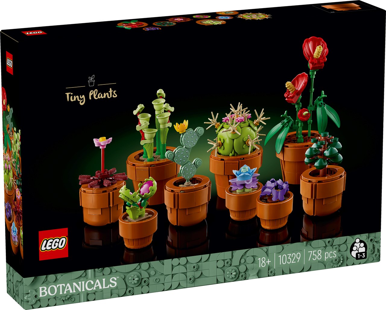 - Postavte si elegantní květinovou výstavku snadnou na údržbu. Stavebnice pro dospělé LEGO® Icons (10329) Miniaturní rostliny se skládá z modelů inspirovaných rostlinami ze suché a tropické oblasti a masožravými rostlinami. Každý z modelů má vlastní terakotový květináč z kostek. Vychutnejte si odpočinek při stavění 9 rostlin, které se skvěle hodí na vystavení doma i v kanceláři.