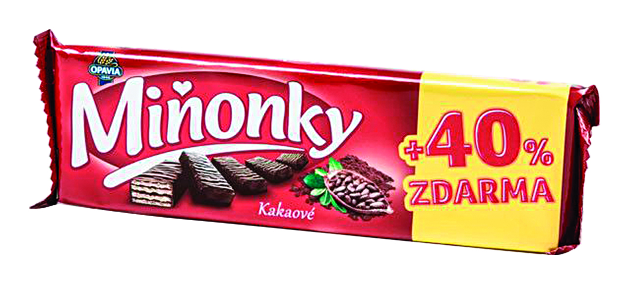 - Oplatky s kakaovou náplní (45 %) v kakaové polevě (34 %).