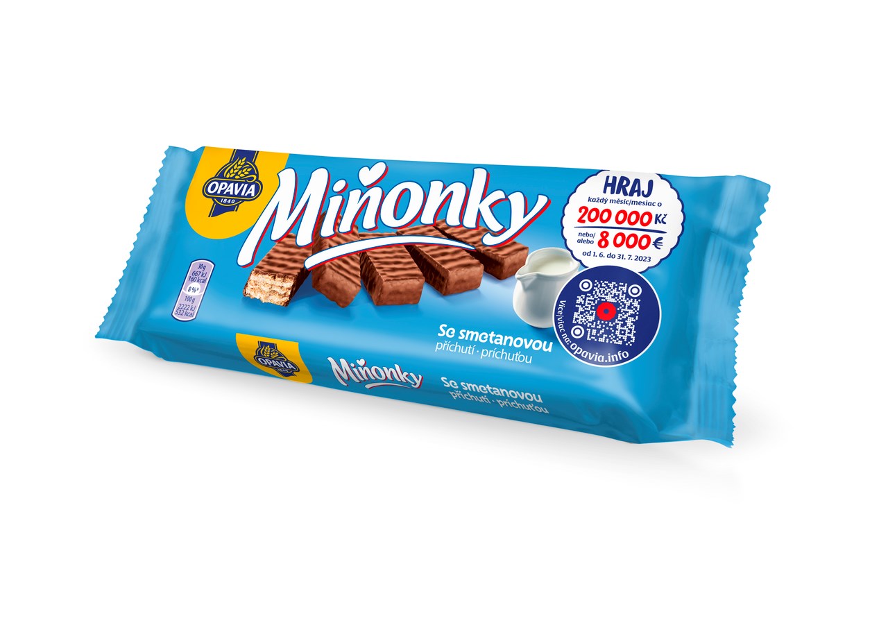 Oplatky s mléčnou náplní (45 %) se smetanovou příchutí v mléčné-kakaové polevě (34 %).