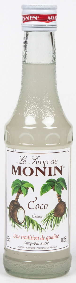 - Cukr, voda, přírodní kokosové aroma s dalšími přírodními aromaty, emulgátor: akáciová guma.