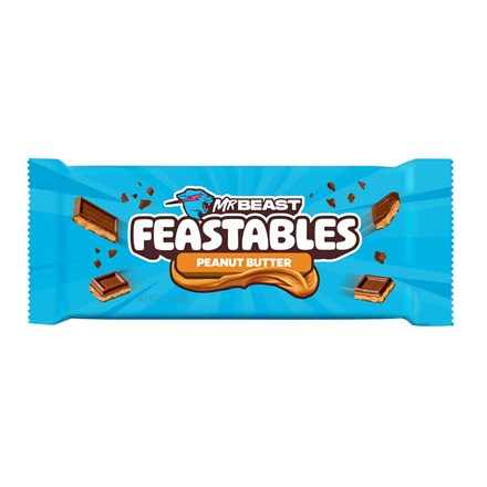 - Mléčná čokoláda Feastables Mr. Beast, plněná arašídovým máslem, pochází z dílny nejsledovanějšího youtubera na světě a je vyrobena z přírodních surovin s velkým důrazem na etiku.