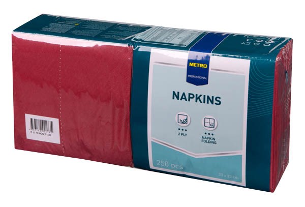 METRO PROFESSIONAL Ubrousky 2vrstvé 33 x 33 cm bordó 250 ks