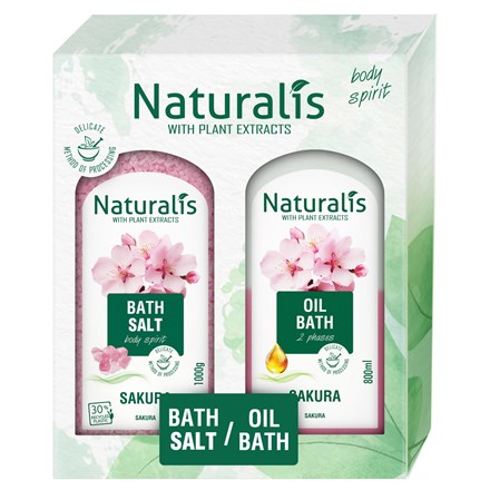 - Dárková sada Naturalis Sakura je jako stvořená pro chvíle klidu a pohody. Kombinace koupelové soli a dvoufázové olejové pěny s vůní rozkvetlých sakur přináší jemný, relaxační zážitek, při kterém zapomenete na každodenní shon.