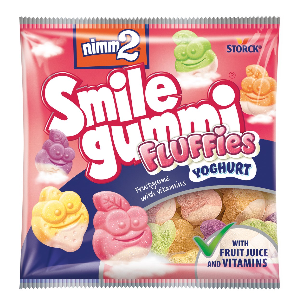 - Glukózový sirup, cukr, sušený jogurt z odstředěného MLÉKA (5,5 %), ovocná šťáva z koncentrátu (5 %) (hroznové víno, bezinky), jedlá želatina, kyseliny (kyselina citronová, kyselina mléčná, kyselina jablečná), želírující látka (pektiny), hydrolyzovaná MLÉČNÁ bílkovina, aromata, regulátor kyselosti (jablečnany sodné), rostlinné koncentráty (černá mrkev, spirulina), niacin, vitamin E, kyselina pantothenová, barvicí extrakty (extrakt z papriky, extrakt z kurkumy); vitamin B6, biotin, vitamin B12.