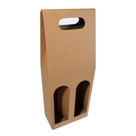 - Hnědá odnosná krabice na 2 láhve s obloukovými otvory a uchem pro uchopení