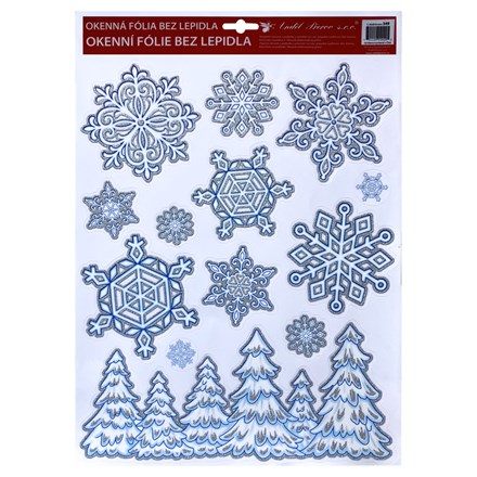 Flexio Fólie okenní 211106 ledové s lesíkem, vločkami, sněhulákem, andělem 1 ks