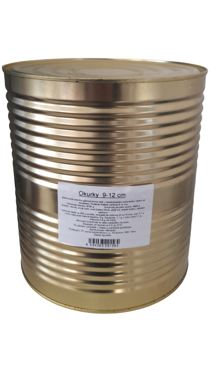 - Okurky celé 9-12 cm. Sterilovaná zelenina jednodruhová celá v kořeněném nálevu se sladidlem