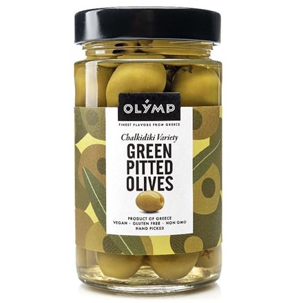 - Řecké zelené olivy bez pecky naložené ve slaném nálevu. Velikost oliv Giant.