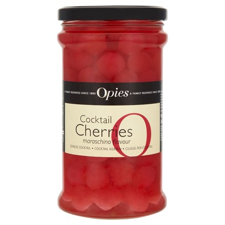 - Třešně, cukr, voda, aroma, kyselina citrónová, barvivo: erythrosine E127, obsahuje siřičitany