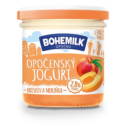 - MLÉKO, ovocná složka 17 % (cukr, broskve 17 %, meruňky 11 %, voda, modifikovaný škrob, broskvová šťáva z koncentrátu 1 %, meruňková šťáva z koncentrátu 1 %, barvící koncentrát z mrkve, zahušťovadlo: karagenan; aroma, regulátory kyselosti: kyselina citronová, citronan sodný), sušné MLÉKO odstředěné, jogurtová kultura