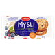 - Celozrnné OVESNÉ vločky 40 %, PŠENIČNÁ mouka, cukr, řepkový olej, glukózový sirup, kousky rozinek 2,1 % (rozinky 94 %, rýžová mouka, slunečnicový olej), proslazené borůvky 1 % (sušené borůvky 78 %, cukr, fruktóza, slunečnicový olej), proslazená klikva velkoplodá 1 % (klikva velkoplodá 51 %, cukr, rýžová mouka, slunečnicový olej), regulátor kyselosti: kyselina citronová, antioxidanty (askorbylpalmitát, přírodní extrakt s vysokým obsahem tokoferolů), přírodní aroma, kypřicí látky (hydrogenuhličitan amonný, hydrogenuhličitan sodný).