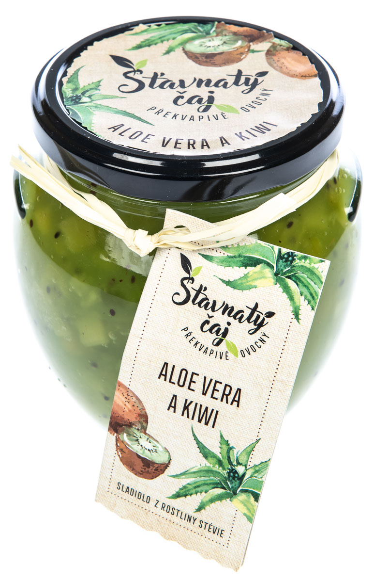 - aloe vera 47%, kiwi 33%, fruktoza,zahušťovadla (xanthan, guar, alginát),kyseliny (jablečná, citronová), aroma,konzervant sorban draselný, antioxidanty(ascorban sodný, disiřičitan sodný), barviva(chlorofyl, betakaroten), sladidlo steviolglykosid(stévie).