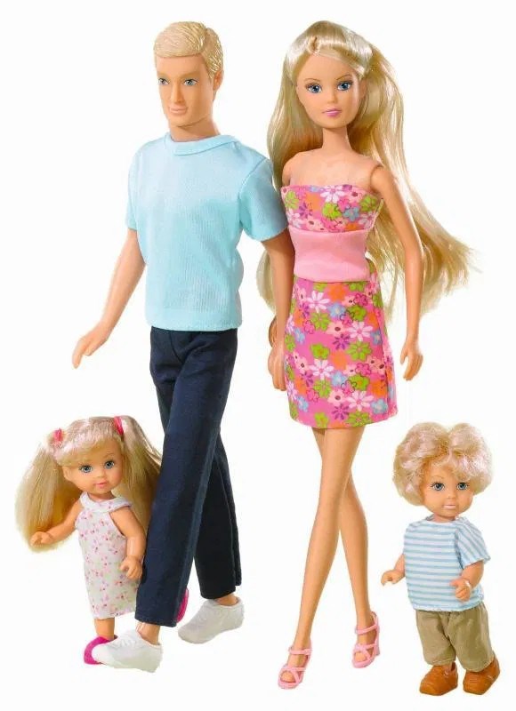 - Panenka Steffi, Kevin, Evička a Timmy jako velká rodina. Výška Kevina 30 cm, Steffi 29 cm, Evička a Timmy 12 cm. Displej obsahuje 24 ks.