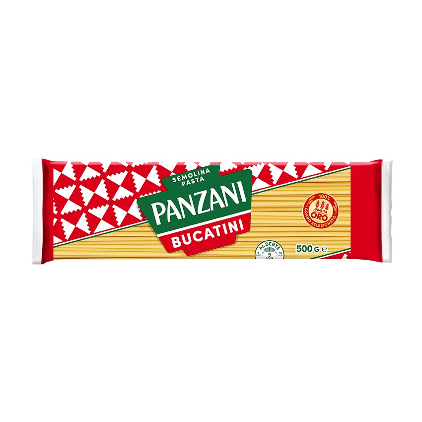 - Bucatini Panzani spojují to nejlepší z dlouhých a krátkých těstovin, mají tvar silné duté dlouhé trubičky a ideálně chutnají s jakoukoliv dobrou omáčkou.