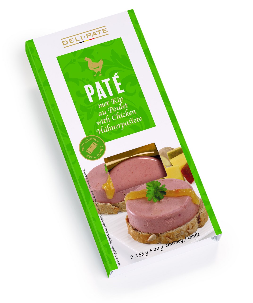 - 33% drůbeží játra, drůbeží tuk, 19%, drůbeží maso, voda, rýžová mouka, jedlá sůl, smetana (MLÉKO), antioxidanty E301, E326, MLÉČNÁ bílkovina, emulgátor E472c, koření, aroma, dextróza, rajčata, cibule, stabilizátory E450, E452, extrakt z kvasnic, konzervanty E250, E261, Chutney: mango 50%, cukr, voda, ocet, zázvor 0,2%, přírodní aroma, zahušťovadla: pektin, E401, konzervant E202. Může obsahovat stopy: LÍSKOVÉ, VLAŠSKÉ OŘECHY