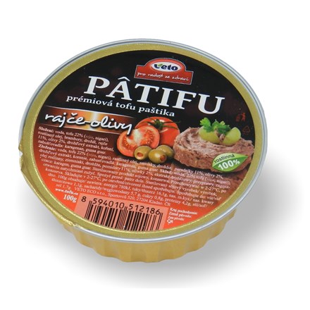 - voda, tofu 22% (sója, nigari), řepkový olej, brambory, droždí, rajče 11%, olivy 2%, drožďový extrakt, koření, zahušťovadla: karagenan, guma guar